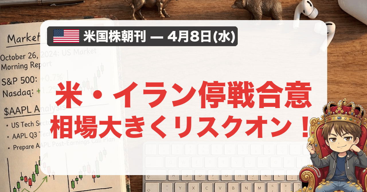 【米国株朝刊-4月8日】米・イラン停戦合意。相場大きくリスクオン!|やす ?? ベンチャーキャピタル