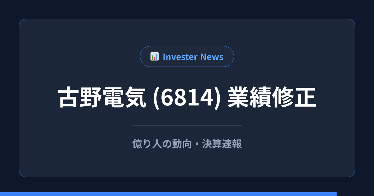 古野電気 (6814)が業績修正!AIが読み解く「なぜ業績予想を変更したのか」理由と株価影響【決算速報】
