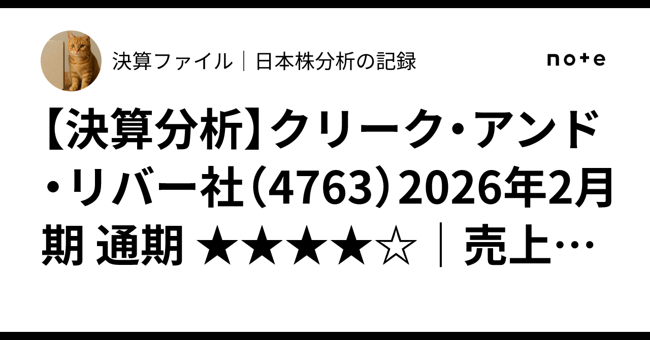 【決算分析】クリーク&リバー2026年2月期通期 ★★★★☆ 売上+22.1%・営業利益+36%・過去最高更新 クリエイター・IT人材の需要旺盛。株価指標確認後に改めて判断 詳細はnote👇 note.com/kurashi_okane/…