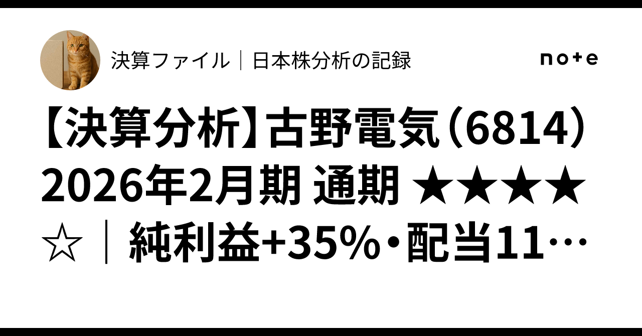 【決算分析】古野電気2026年2月期通期 ★★★★☆ 純利益+35%・配当110→150円に大幅増額 PER15倍で割安感あり。ニッチ航海計器トップとして買い判断 詳細はnote👇 note.com/kurashi_okane/…