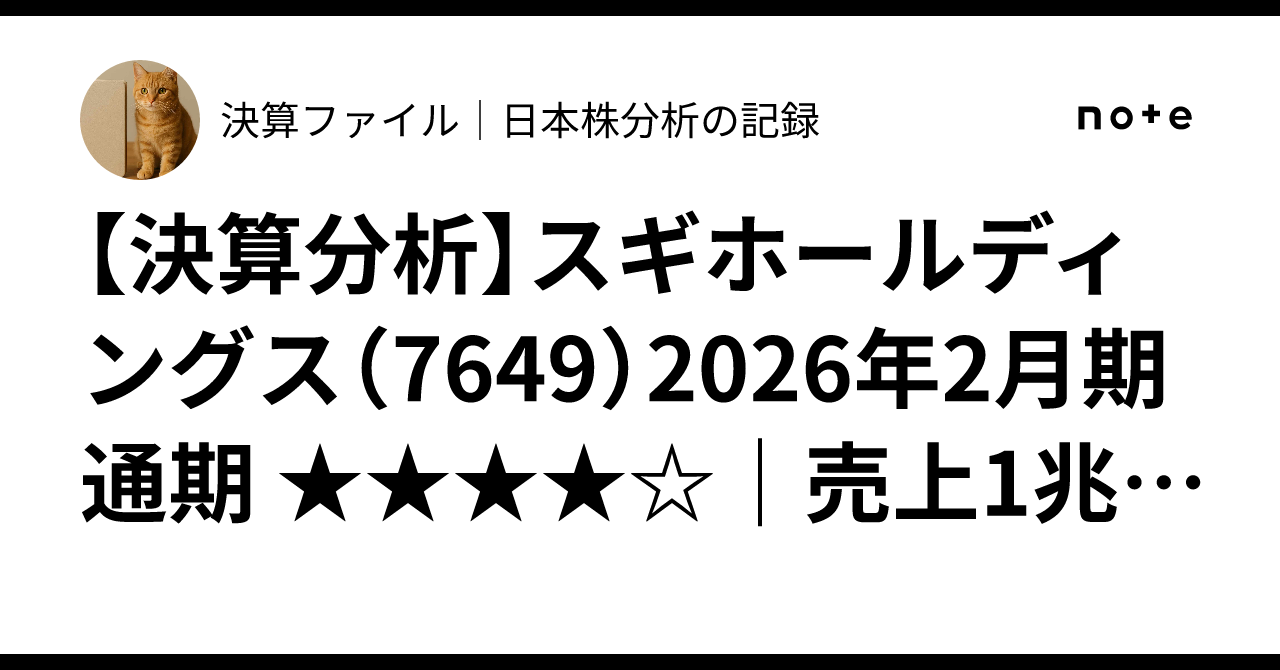 【決算分析】スギホールディングス(7649)2026年2月期 通期 ★★★★☆|売上1兆円突破・4期連続最高益・純利益+72%|決算ファイル|日本株分析の記録