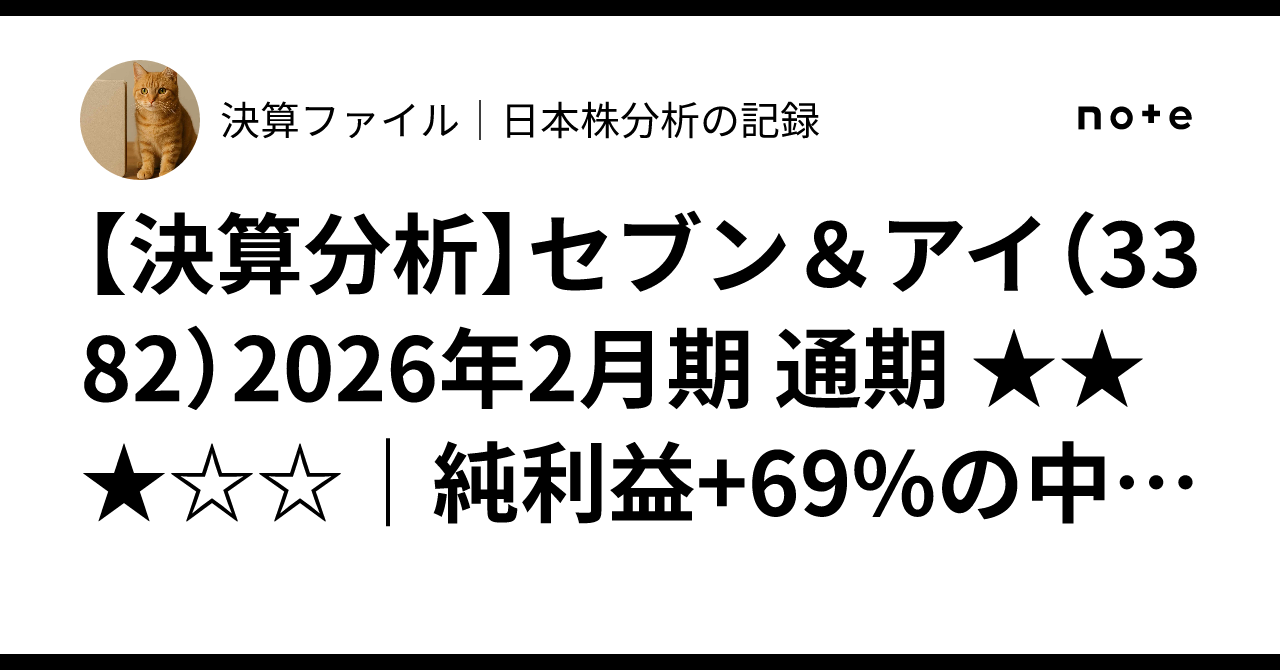 【決算分析】セブン&アイ(3382)2026年2月期 通期 ★★★☆☆|純利益+69%の中身に注意・来期は減収減益見通し|決算ファイル|日本株分析の記録
