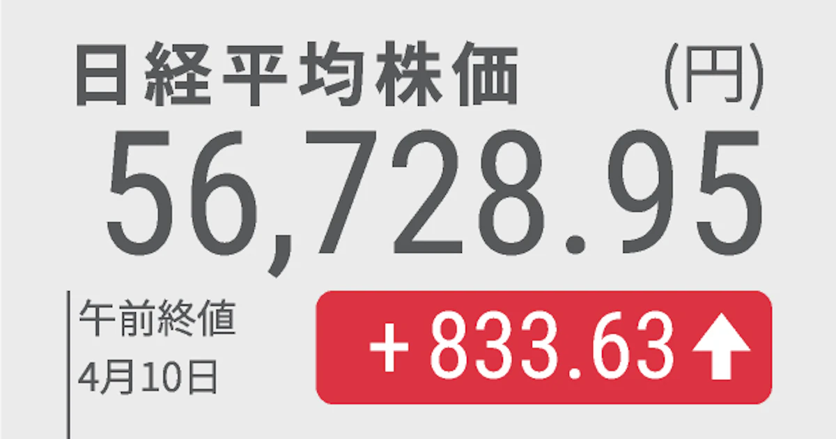 日経平均前引け 反発 833円高の5万6728円 - 日本経済新聞