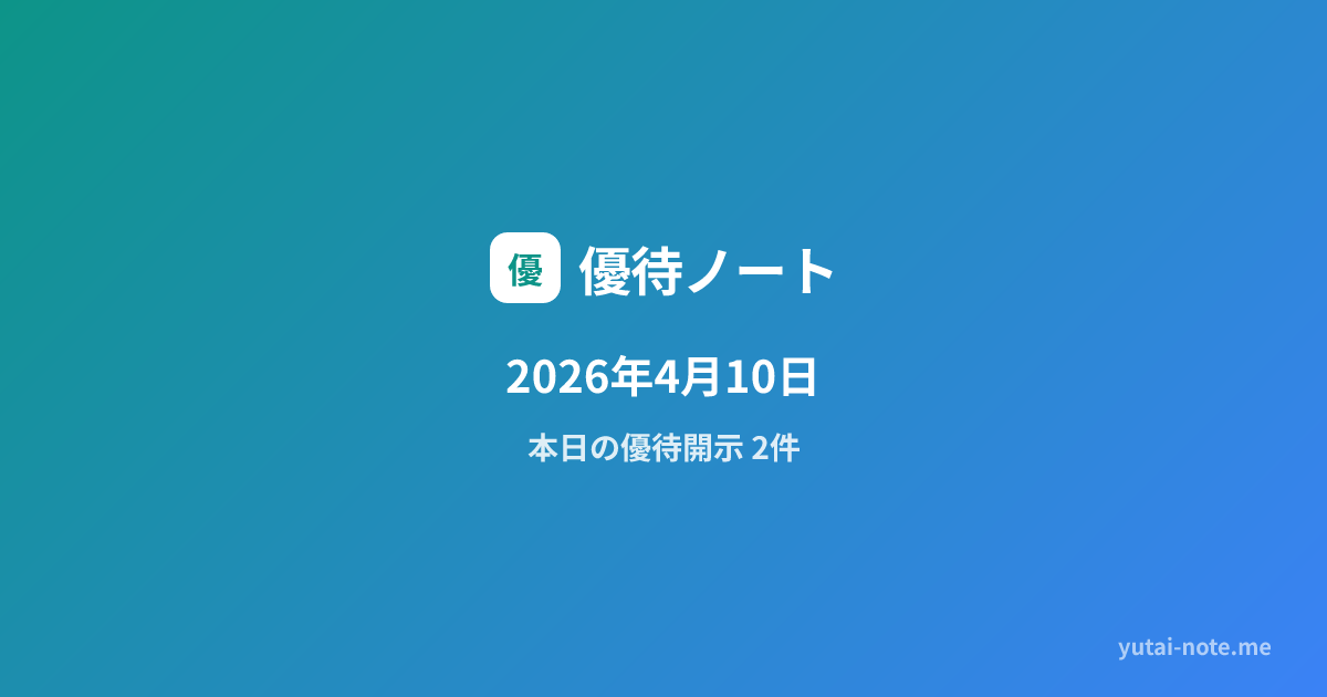 2026年4月10日の株主優待ニュース(2件)| 優待ノート