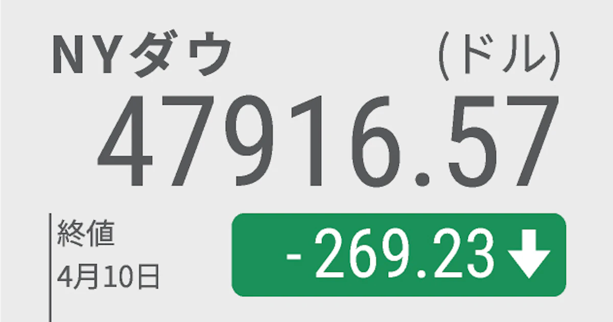 日本経済新聞 nikkei.com/article/DGXZQO… > 10日の米株式市場でダウ工業株30種平均は前日比269ドル安の4万7916ドルと反落して取引を終えた。多くの機関投資家が運用指標とするS&P500種株価指数も下げた。