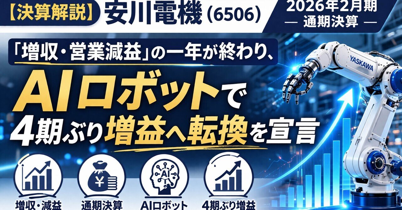 【決算解説】安川電機(6506)2026年2月期 通期決算――「増収・営業減益」の一年が終わり、AIロボットで4期ぶり増益へ転換を宣言|kabuya66