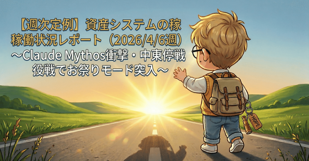 【週次定例】資産システムの稼働状況レポート(2026/4/6週)〜Claude Mythos衝撃・中東停戦でお祭りモード突入〜|tomomira