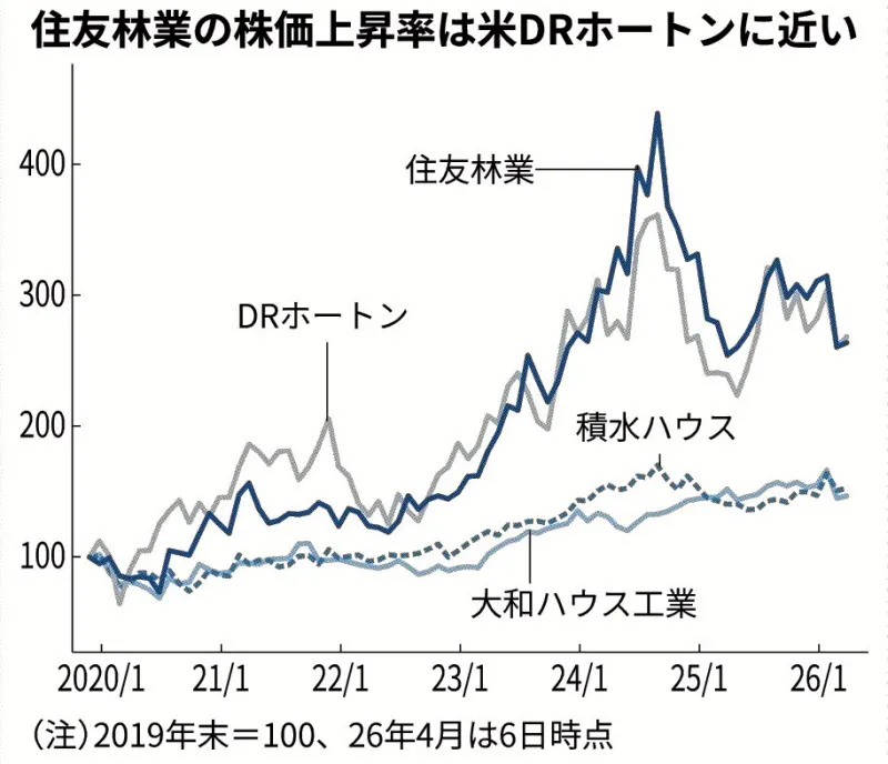 ◎2026/4/14の日経新聞 住友林業、米住宅大手のトライ・ポイント・ホームを買収。販売戸数は第5位に。米国はリーマンショック後の供給抑制で400万戸の住宅不足と言われる #1911住友林業 nikkei.com/nkd/company/ar…