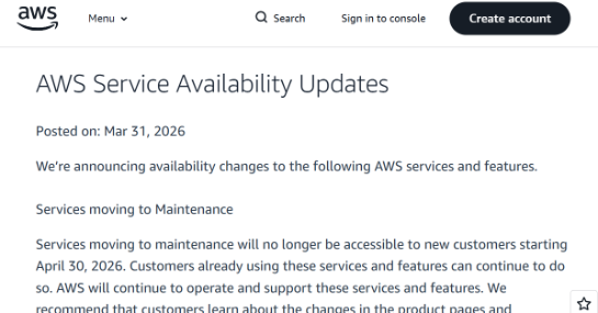 AWSが複数サービスの終了計画発表 AWS App Runnerは4月30日で新規受付停止、Amazon RDS Custom for Oracleは1年後に終了