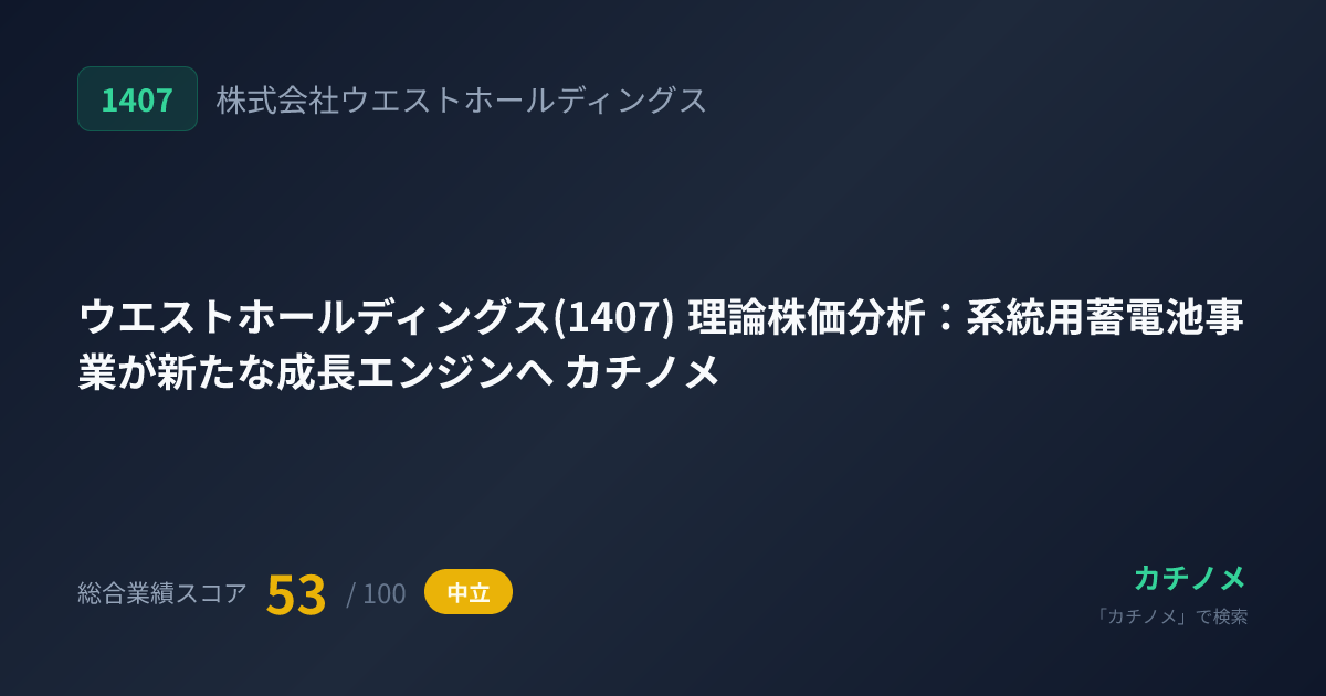 ウエストホールディングス(1407) 理論株価分析:系統用蓄電池事業が新たな成長エンジンへ カチノメ | カチノメ