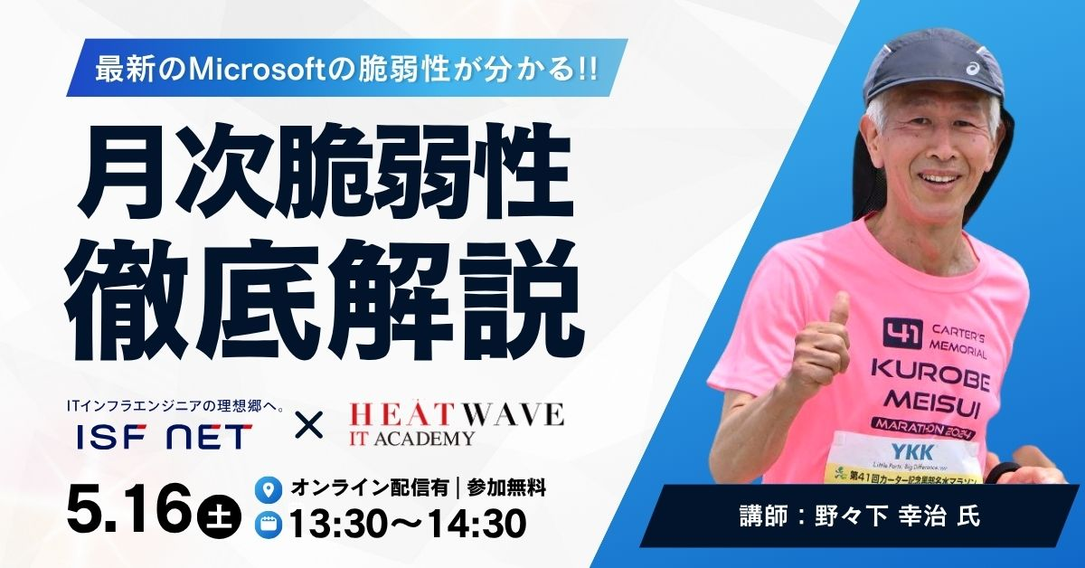 セキュ塾の提携企業である「株式会社アイエスエフネット」の 野々下 幸治 氏をお呼びして、Microsoftの月次脆弱性情報を解説していただくセミナーを開催することが決定しました!! white.connpass.com/event/390308/