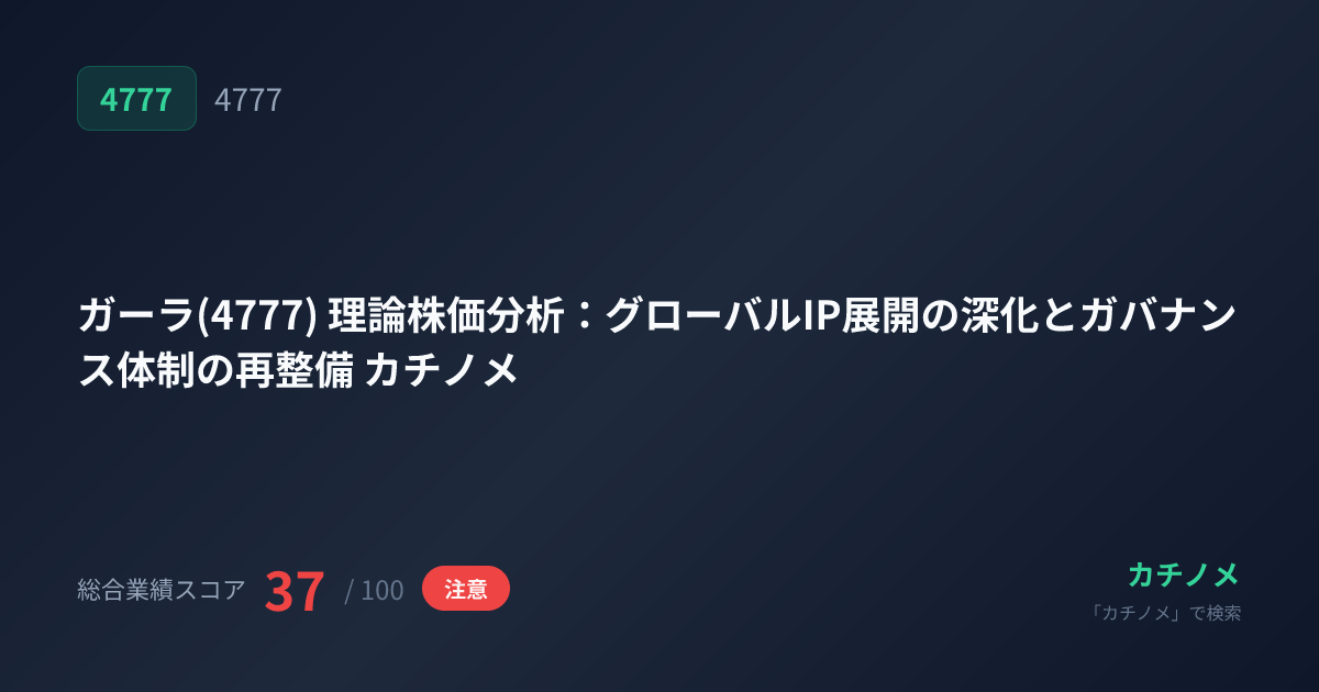 ガーラ(4777) 理論株価分析:グローバルIP展開の深化とガバナンス体制の再整備 カチノメ | カチノメ