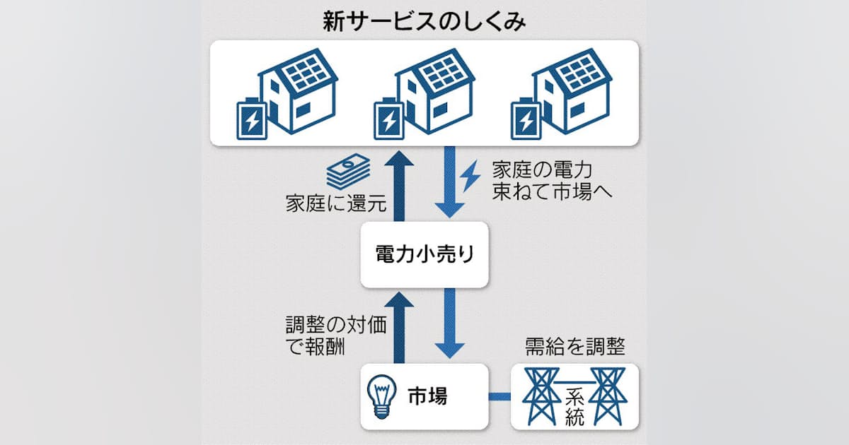 家庭の蓄電池から売電 韓国系やKDDI系、市場で取引 利益還元、光熱費を削減 - 日本経済新聞