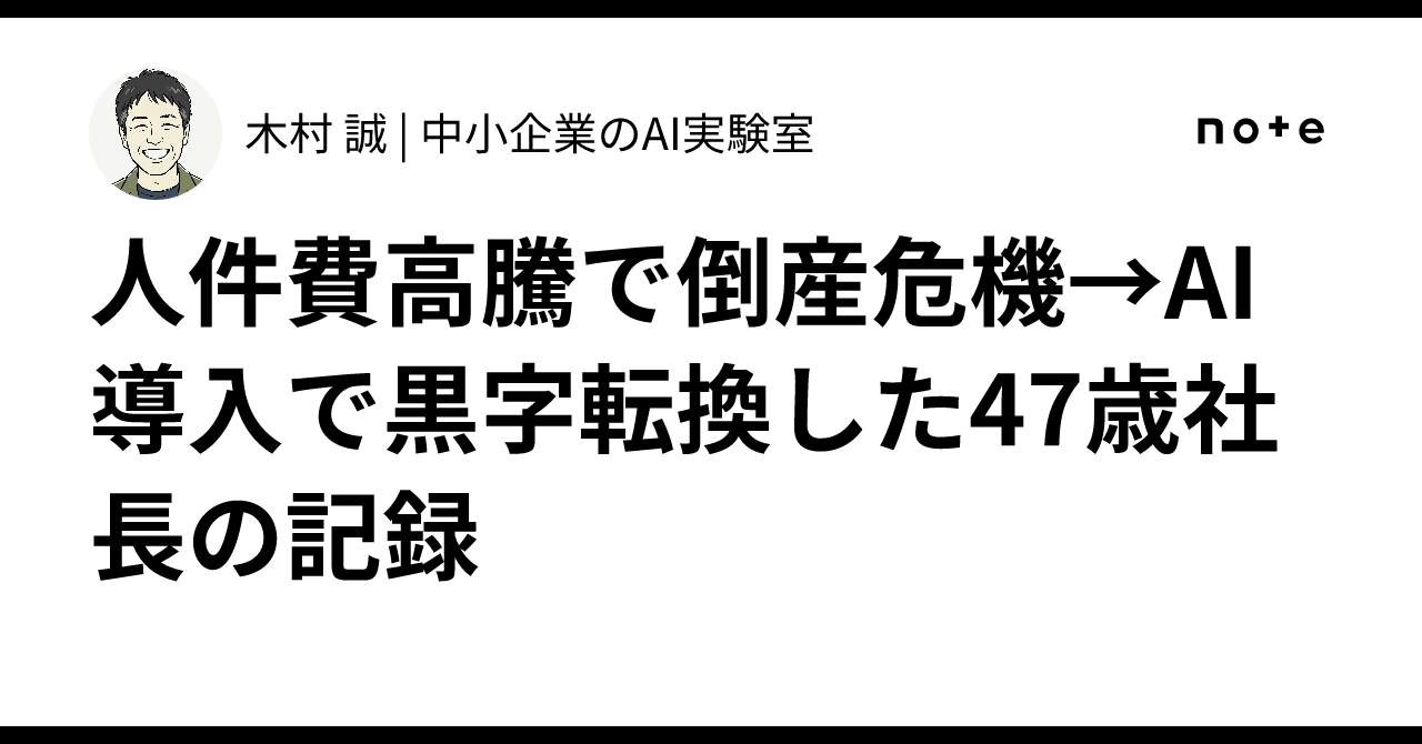 人件費高騰で倒産危機→AI導入で黒字転換した47歳社長の記録|木村 誠 | 中小企業のAI実験室