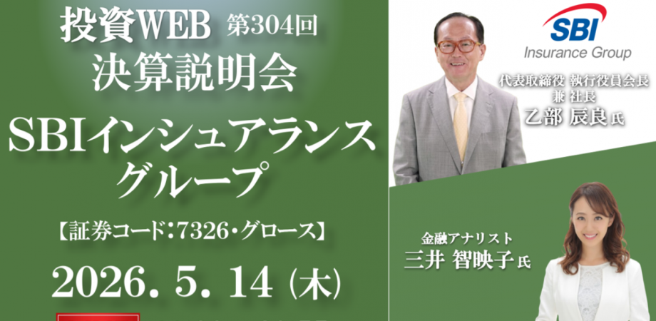 無料????《第304回》SBIインシュアランスグループの決算WEBセミナー|MC:三井智映子さん