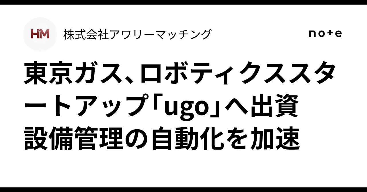 東京ガス、ロボティクススタートアップ「ugo」へ出資 設備管理の自動化を加速|株式会社アワリーマッチング