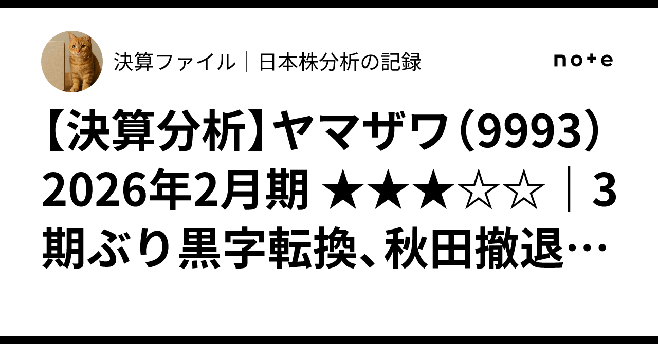 【決算分析】ヤマザワ(9993)2026年2月期 ★★★☆☆|3期ぶり黒字転換、秋田撤退で体質改善も来期は大幅減益予想|決算ファイル|日本株分析の記録
