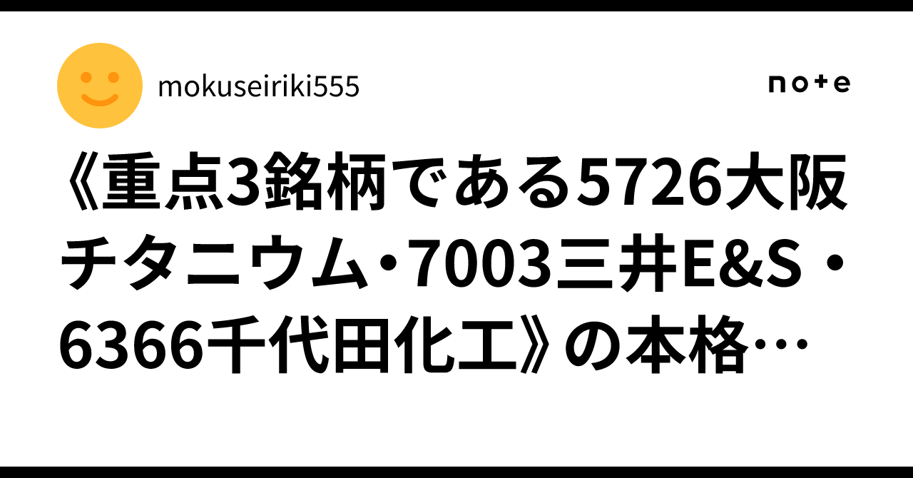 《重点3銘柄である5726大阪チタニウム・7003三井E&S ・6366千代田化工》の本格上昇が始まっても良い時間帯に入って来ました。|mokuseiriki555