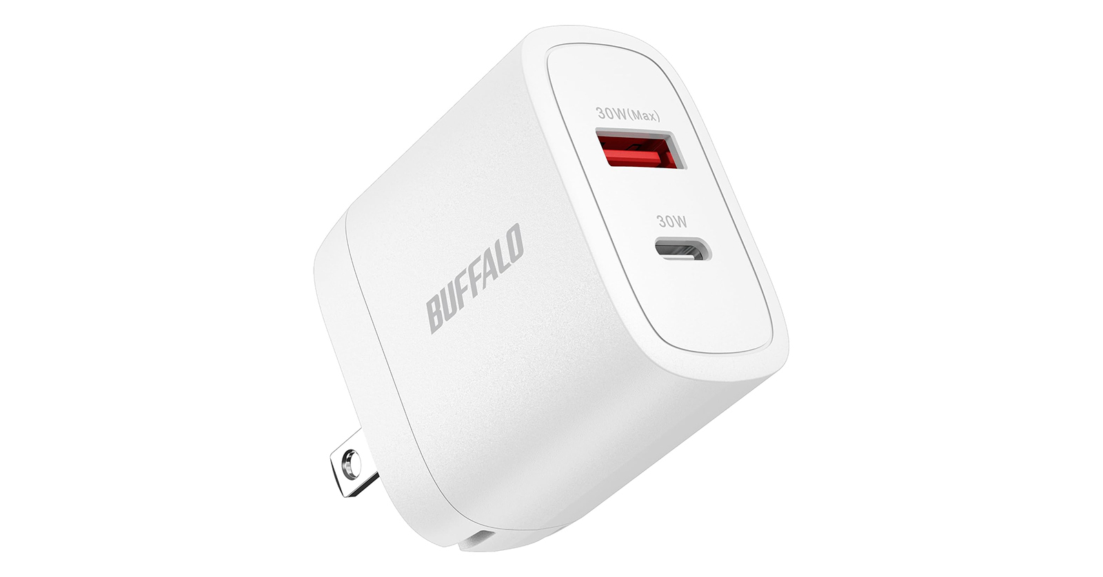最大30W出力の2端子充電器「バッファロー BSACPD3005C2WH」が10%オフの2020円に