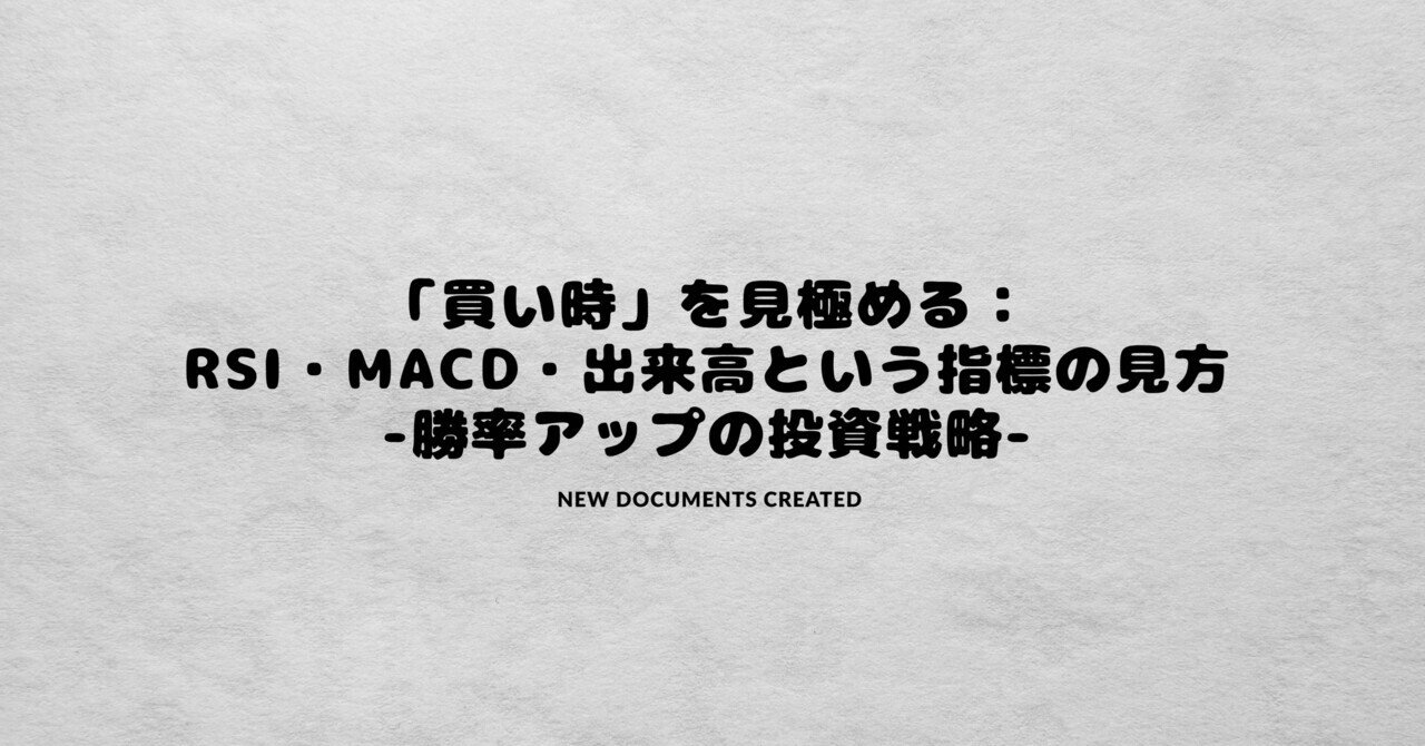 「買い時」を見極める:RSI・MACD・出来高という指標の見方-勝率アップの投資戦略-|ochiai | 攻めすぎない投資