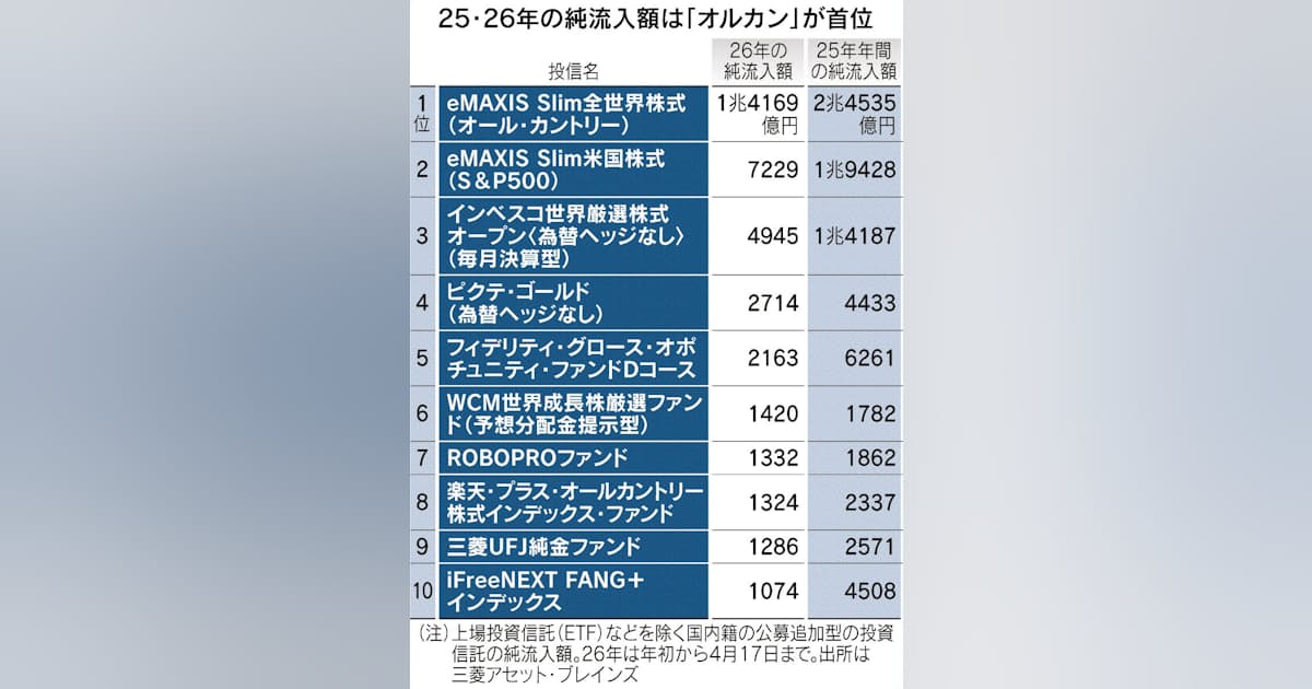「オルカン」買い、意欲衰えず 年初から1.4兆円、前年の1.5倍 「積立投資は長期」が浸透 - 日本経済新聞