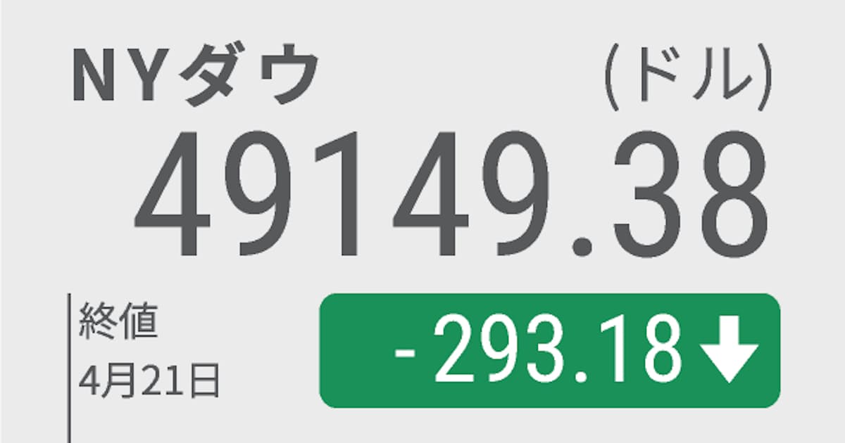 日本経済新聞 nikkei.com/article/DGXZQO… > 21日の米株式市場でダウ工業株30種平均は続落し、終値は前日比293ドル18セント安の4万9149ドル38セントだった。