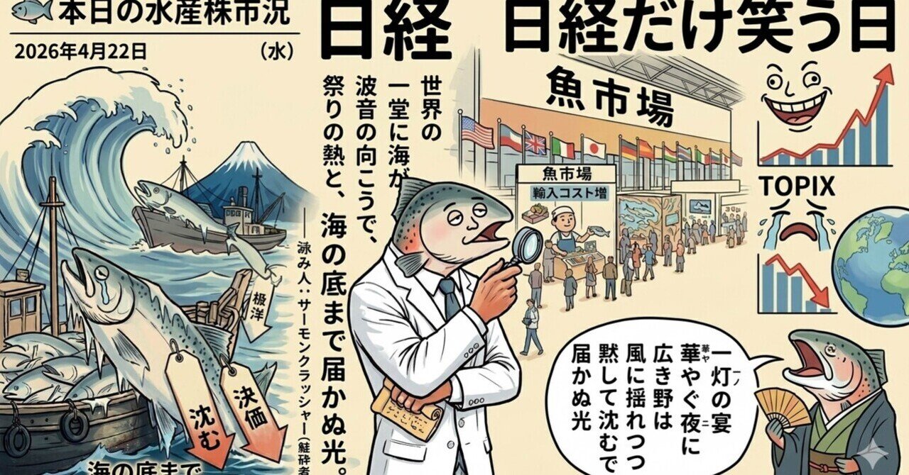 日経最高値・TOPIX下落・水産株23銘柄全面安——日経だけが笑った日、魚屋は誰も笑わなかった|Salmon crusher