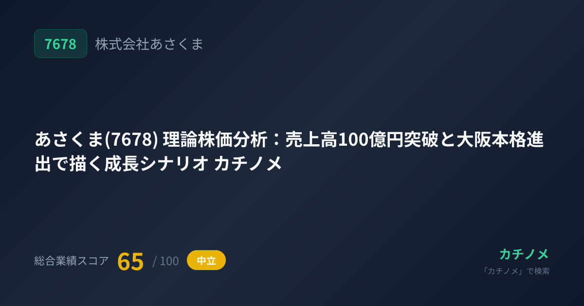 あさくま(7678) 理論株価分析:売上高100億円突破と大阪本格進出で描く成長シナリオ カチノメ | カチノメ