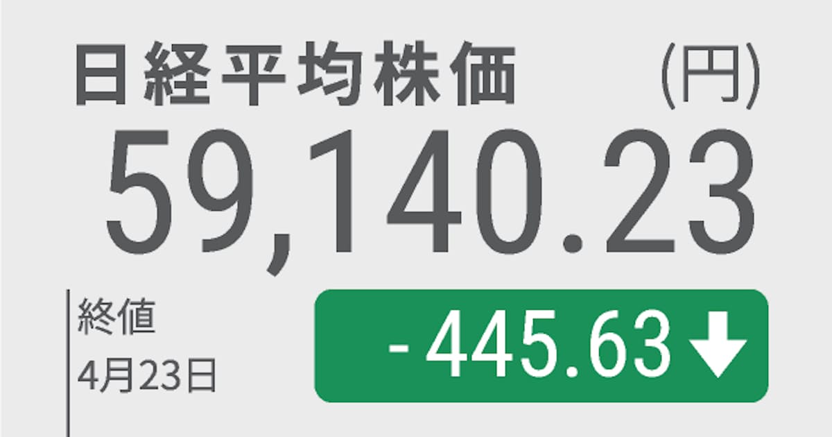 日経平均株価、4日ぶり反落 終値は445円安の5万9140円 - 日本経済新聞