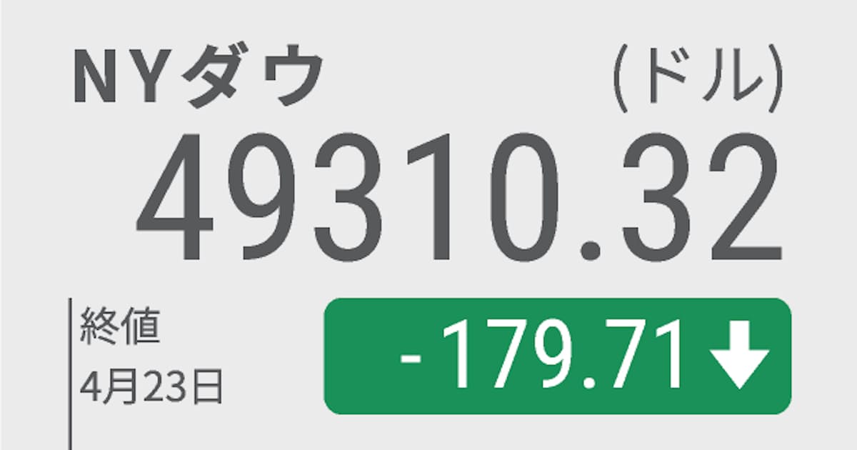 NYダウ179ドル安 IBM決算でソフトウエア株安再燃 - 日本経済新聞