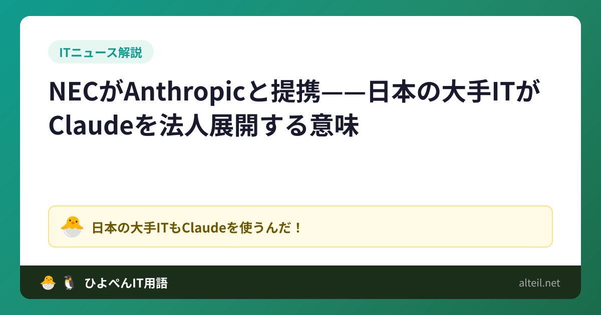 NECがAnthropicと提携——日本の大手ITがClaudeを法人展開する意味