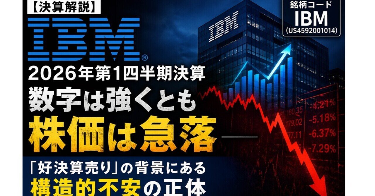 【決算解説】IBM 2026年第1四半期決算 数字は強くとも株価は急落――「好決算売り」の背景にある構造的不安の正体|kabuya66