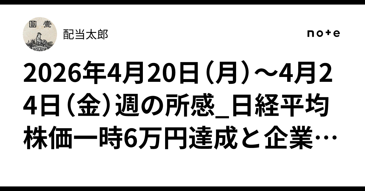 2026年4月20日(月)~4月24日(金)週の所感_日経平均株価一時6万円達成と企業業績・予想発表シーズへ|配当太郎