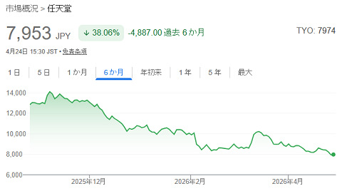 [7974]任天堂株価が将来の不安により連日下落、とうとう1株7974円を下回ってしまう有り様に : ■■速報@保管庫(Alt)■■