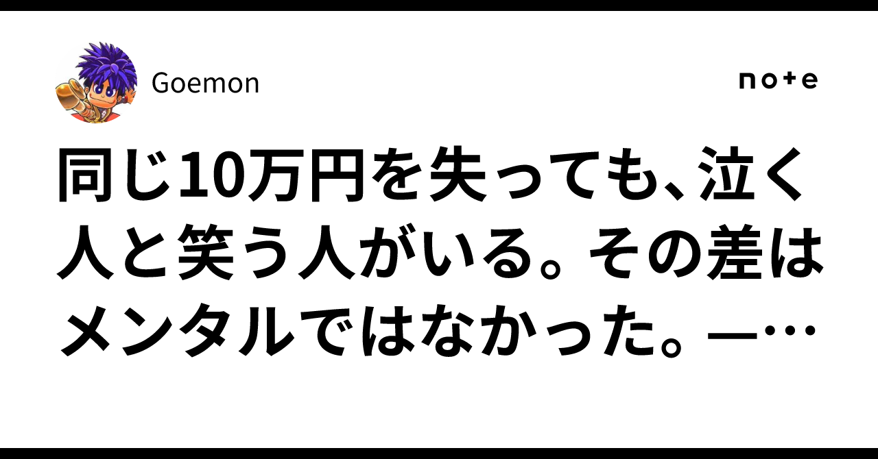 同じ10万円を失っても、泣く人と笑う人がいる。その差はメンタルではなかった。——損失の重さを決めているのが、入金力だと気づいた話。|Goemon