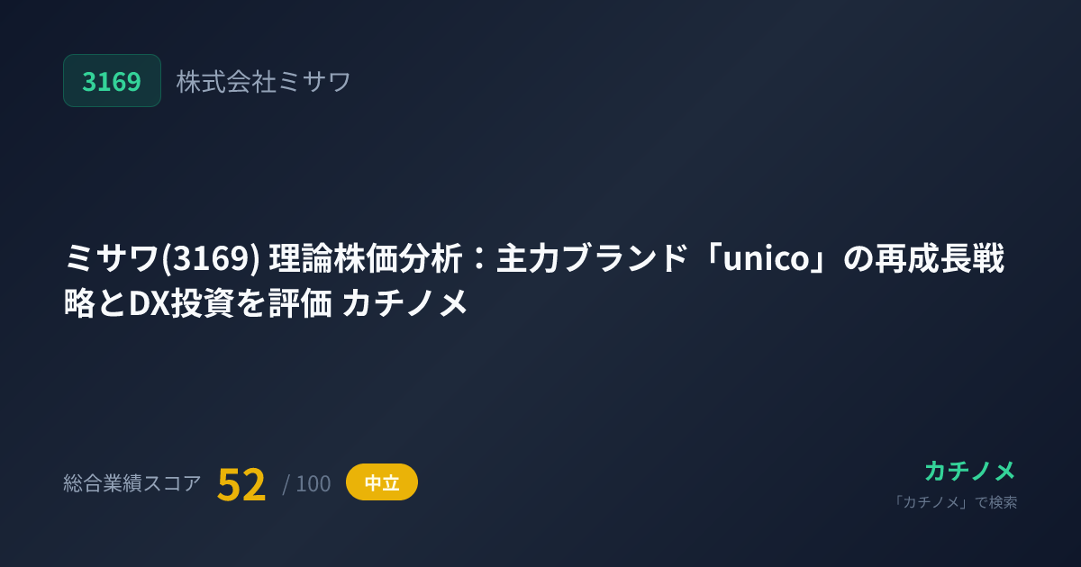 ミサワ(3169) 理論株価分析:主力ブランド「unico」の再成長戦略とDX投資を評価 カチノメ | カチノメ