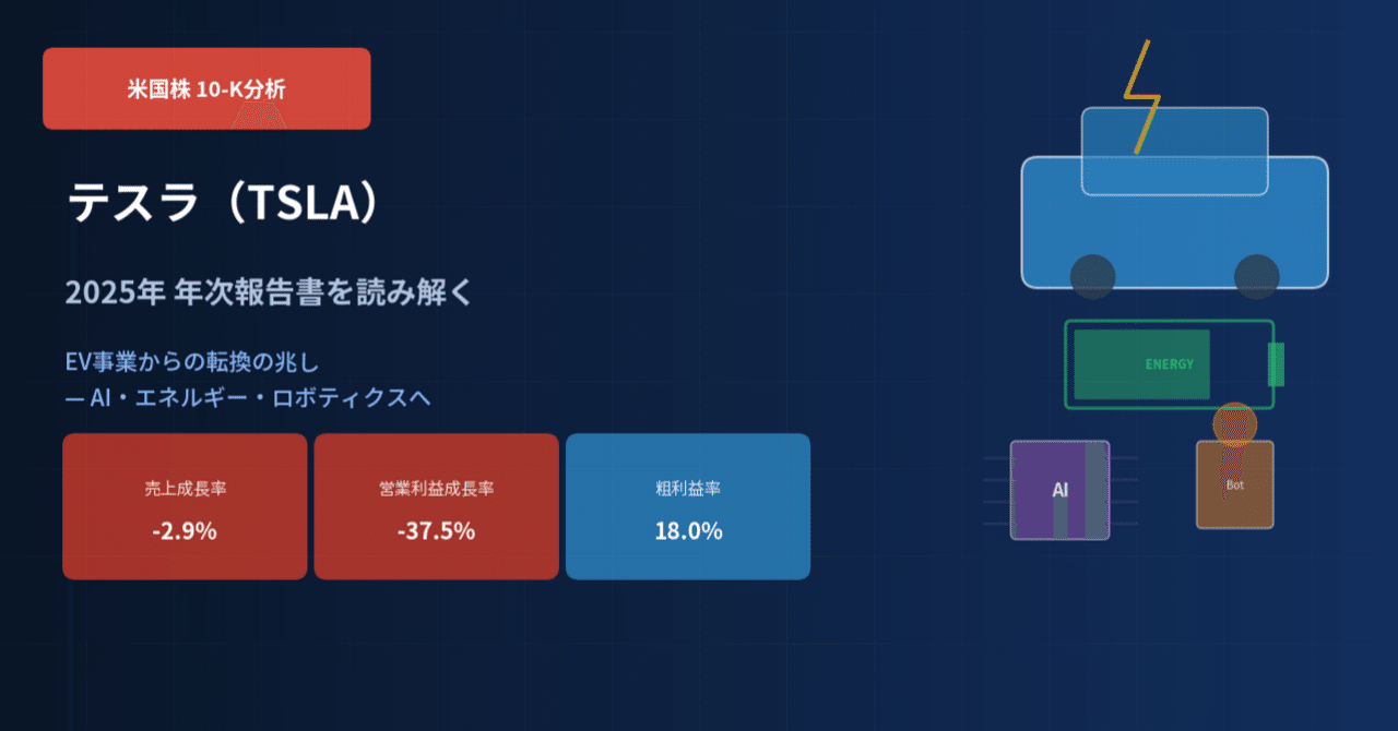 テスラ / Tesla(TSLA)決算分析|EV事業からの転換の兆し、AI・ロボットへの布石【2025年10-K 日本語解説】|米国株シグナルラボ