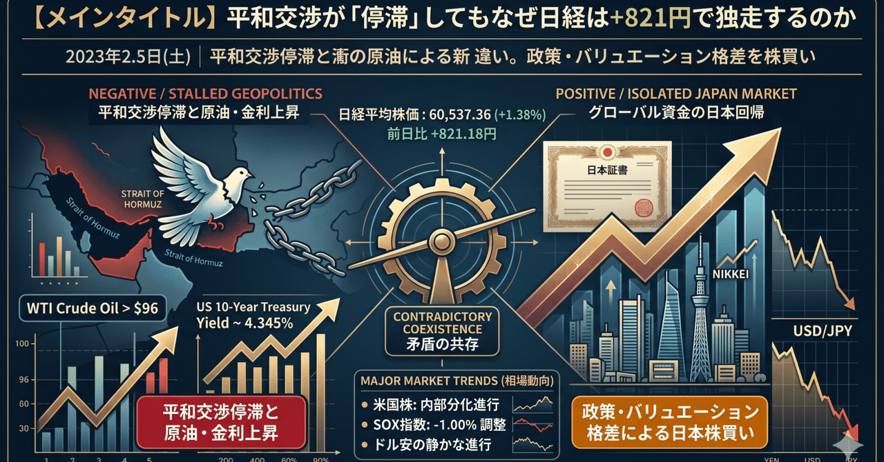 ?平和交渉が「停滞」してもなぜ日経は+821円で独走するのか│ホルムズ「核分離」提案が示す地政学の多段階化と、米国株の内部分化が告げる相場テーマの静かな転換 2026年4月28日(火)AM6|Global Marketの羅針盤│リスクコンサル