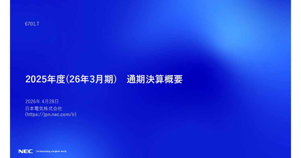 NECは2026年4月28日、2025年度の通期決算概要を発表した。 bizzine.jp/article/detail…
